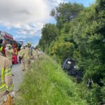 Bereits auf Anfahrt konnte vom eingetroffenen Rettungsdienst Entwarnung gegeben werden. Im Fahrzeug war nur eine Person, welche sich bereits selbst aus dem Fahrzeug befreien konnte.