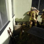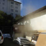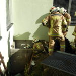 Dort war es in einem Beschusskanal zu einem Schwelbrand mit enormer Rauchentwicklung gekommen. Nach Eintreffen unserer Kräfte wurde vom Tank 1 sofort ein Innenangriff unter schwerem Atemschutz gestartet. Dabei wurde ein HD-Rohr vorgenommen und eine Druckbelüftung der Räumlichkeiten gestartet. Der Tank 2 stellte den Reserve-Atemschutztrupp und brachte auf der Rückkseite des Gebäudes ein Entlüftungsgerät in Stellung. Nachdem „Brand aus“ gegeben wurde, und der ganze Keller rauchfrei war, wurde das komplette Brandgut ins Freie verbracht, wo noch Nachlöscharbeiten erfolgten. Der Einsatz konnte nach ca. 2 Stunden beendet werden.