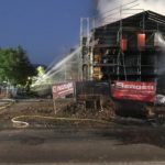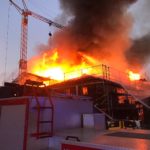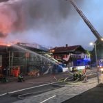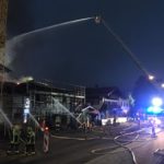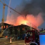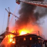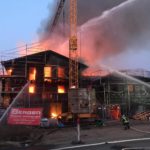 Dort war der Rohbau eines komplett aus Holz bestehenden Mehrparteienhauses aus unbekannter Ursache in Brand geraten.