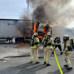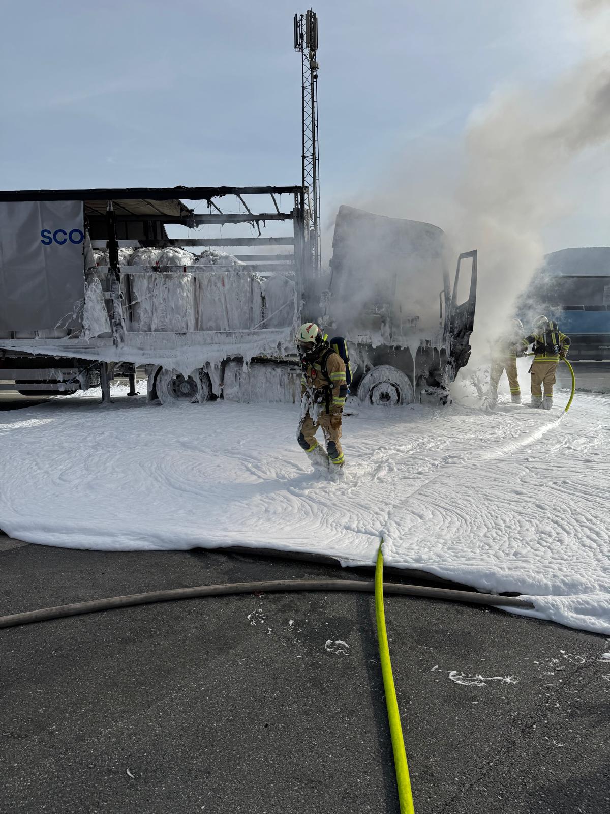 Ein besonderer Dank gilt den aufmerksamen LKW-Fahrern, die die daneben abgestellten Fahrzeuge sofort in Sicherheit brachten, und dadurch eine weitere Ausbreitung des Brandes ebenfalls verhinderten.
