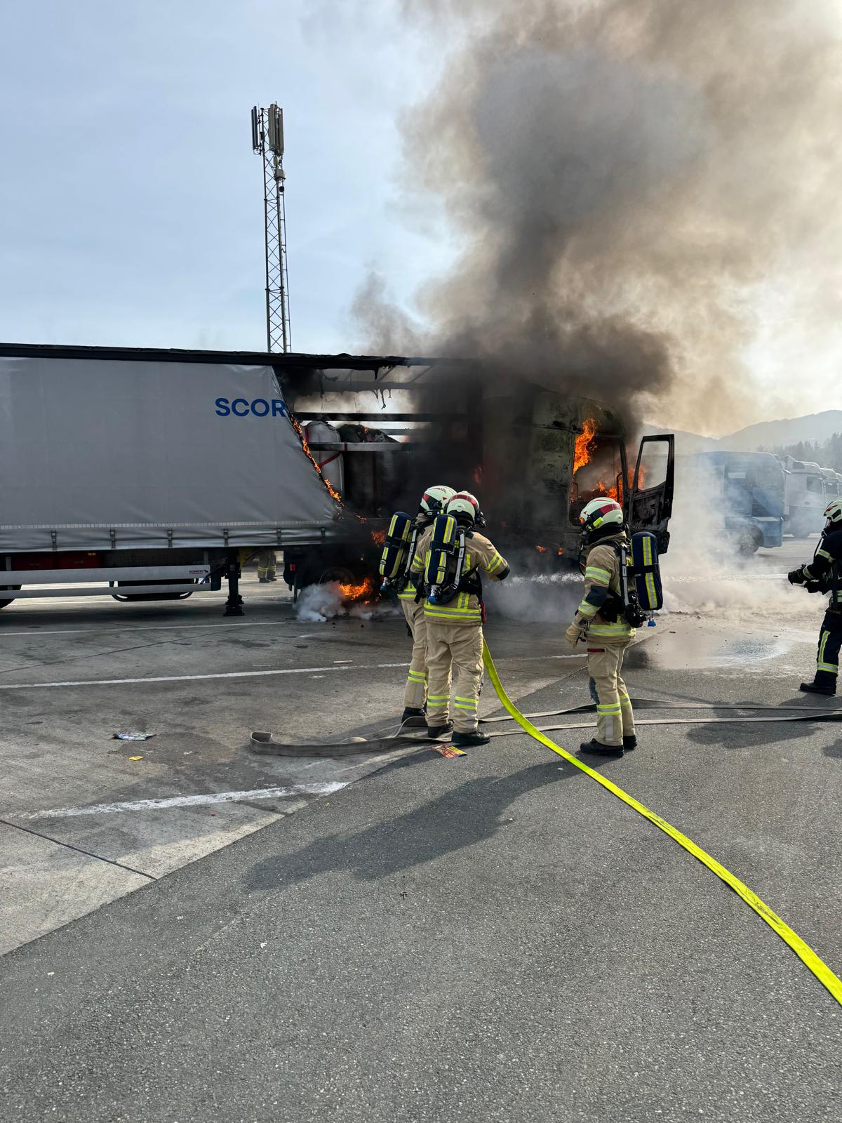 Die STADTFEUERWEHR Kufstein wurde am 8.3.26 um kurz nach 14:00 Uhr gemeinsam mit der Feuerwehr Wörgl und der Feuerwehr Angath zu einem LKW-Brand bei einer Raststation auf der A12 alarmiert.