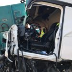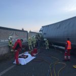 Ein LKW-Sattelzug ist aus bislang ungeklärter Ursache auf einen vor ihm fahrenden Hängerzug aufgefahren. Im Anschluss prallte der LKW in die Beton-Mittelleitwand. Der Fahrer wurde dabei im Beinbereich in seiner Kabine massiv eingeklemmt.