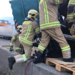 Nach der Ersterkundung durch den Einsatzleiter wurde sofort mit der technischen Menschenrettung begonnen. Parallel dazu wurde ein dreifacher Brandschutz aufgebaut. Erst durch den Einsatz von mehreren hydraulischen Rettungsgeräten wurde der Fahrer schlussendlich befreit und aus der Kabine geborgen.