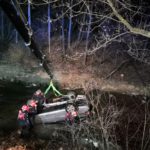 Das Fahrzeug wurde mit dem Ladekran des SRF am Uferrand wieder auf die Räder gestellt. Die Bergung wurde dann im Anschluss von einem Abschleppunternehmen durchgeführt.