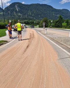 Zum Einsatz rückten 3 Fahrzeuge mit 10 Mann aus. Es wurden 36 Sack Bindemittel à 17 kg auf das ausgelaufene Palmöl aufgetragen, um die Verkehrssicherheit wiederherzustellen.