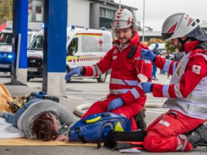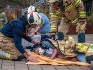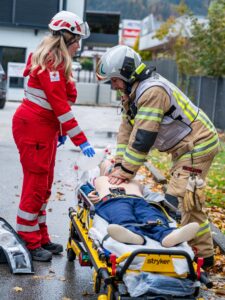 Gemeinsam mit dem Rettungsdienst wurde die Rettung, Erstversorgung und der Abtransport der Verletzten unter möglichst realen Bedingungen trainiert. Die Übung stellte hohe Anforderungen an die Koordination der Einsatzkräfte und verdeutlichte einmal mehr die effiziente Zusammenarbeit zwischen Feuerwehr und Rettungsdienst.