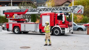 Am 25. Oktober 2025 fand die diesjährige Jahresabschlussübung der Stadtfeuerwehr Kufstein statt. Den feierlichen Auftakt bildete die offizielle Übergabe der neuen Drehleiter, die von Bürgermeister Mag. Martin Krumschnabel und Bezirkshauptmann Dr. Kurt Berek an die Feuerwehr übergeben wurde. Beide bedankten sich bei den Einsatzkräften für ihren unermüdlichen Einsatz und betonten die Bedeutung moderner Einsatztechnik für den Schutz der Bevölkerung.