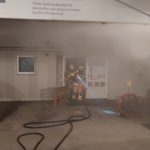 Nach der Bergung der Eingeschlossenen wurde eine umfangreiche Druckbelüftung des Gebäudes mittels Überdrucklüfter vorgenommen. Die beiden Atemschutztrupps schufen dazu vorher geeignete Brandrauchentlüftungsöffnungen.