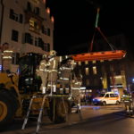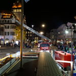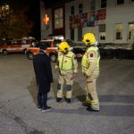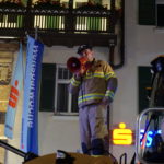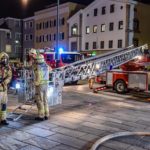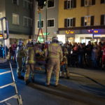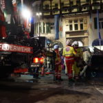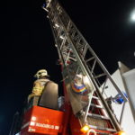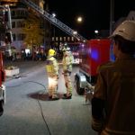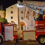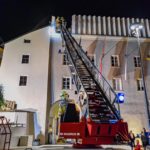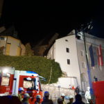 Die 37-Meter-Drehleiter der STADTFEUERWEHR Kufstein wurde sofort direkt vor dem Gebäude in Stellung gebracht, um die am Dach befindlichen Personen – ebenfalls mittels Fluchthauben – über den Korb der Drehleiter zu evakuieren. Nach der Bergung der Personen und Übergabe an den Rettungsdienst, wurde eine B-Zubringerleitung über die Drehleiter vorgenommen, um von der Terrasse aus mit C-Rohren zur Brandbekämpfung – durch die im Gebäude befindlichen Atemschutztrupps – vorgehen zu können.