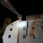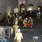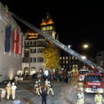 Übungsannahme war zum einen ein Brand im 3. Obergeschoss des Rathauses. Mehrere Personen, welche sich im „Bürgersaal“ befanden, konnten sich auf die davorliegende Terrasse in Sicherheit bringen, wurden aber bald vom dichten Brandrauch eingeschlossen. Bei den Darstellern der „Eingeschlossenen“ handelte es sich um Mitglieder der Jugendfeuerwehr Kufstein.
