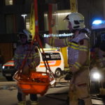 Während weitere Löschfahrzeuge neue Atemschutztrupps stellten und die Wasserversorgung gewährleisteten, wurden Löschleitungen für die im Gebäude befindlichen Trupps vorbereitet.