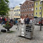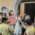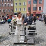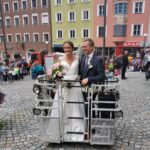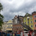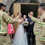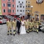 Das Hochzeitspaar wurde nach der standesamtlichen Trauung von uns mit einem Schnapserl empfangen und danach mit unserer Drehleiter dem 7. Himmel ein bisschen näher gebracht.