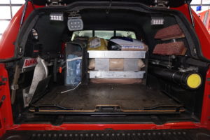 Der LAST 2 mit seinen 190 PS dient hauptsächlich als Zugfahrzeug für unsere Boote. Auf seiner ausziehbaren Ladefläche findet sich Ölbindemittel, ein Streuwagen, Schaufeln, Besen, sowie Lampen und ein Feuerlöscher.
