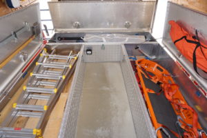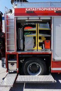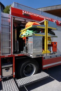 eine Rettungsplattform, Sicherungsmaterial zur Personensicherung und Personenrettung, Gurte zur Tierbergung, Zubehör für Kran und Seilwinde, eine Schaufeltrage und einen Hubzug