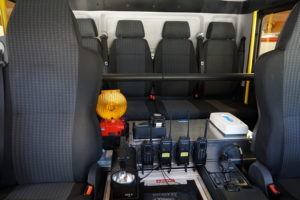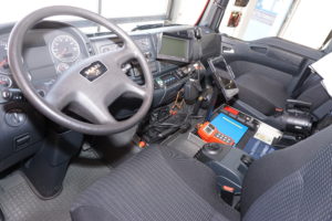 Monitor für die Heckkamera, Kontrolleinheit für die Verkehrsleiteinrichtung, sowie die Fernsteuerungen für die Frontseilwinde und den Kran
