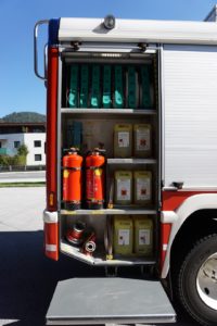 2 B-Schläuche, 5 C-Schläuche, 2 P12 Feuerlöscher, Kübelspritze, 6 Schaumkanister, Zumischer Z8