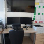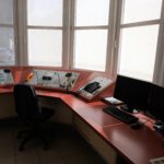 Von der Zentrale aus besteht freie Sicht in die Fahrzeughalle und auf den Vorplatz. Sie ist ausgestattet mit