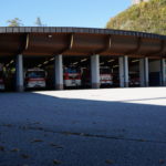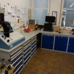 Die Halle hat 7 Boxen in der jeweils zwei Fahrzeuge hintereinander Platz finden, eine Werkstattbox und eine Waschbox. Für die externe Fahrzeugversorgung sind alle Plätze mit Strom- u. Druckluftanschlüssen ausgestattet.